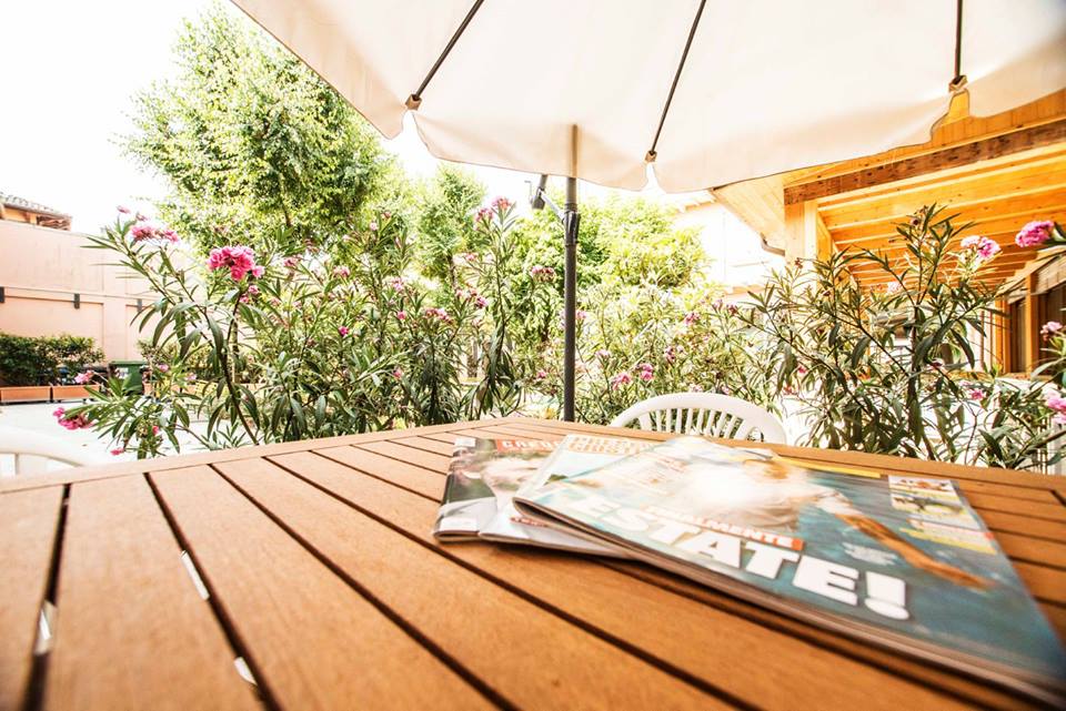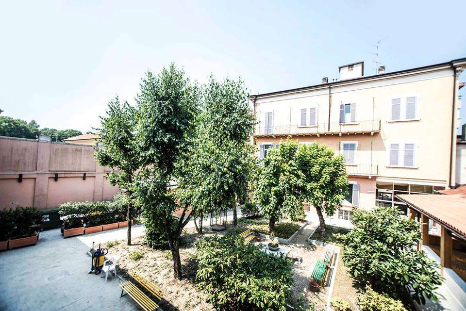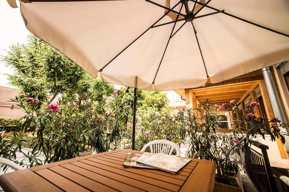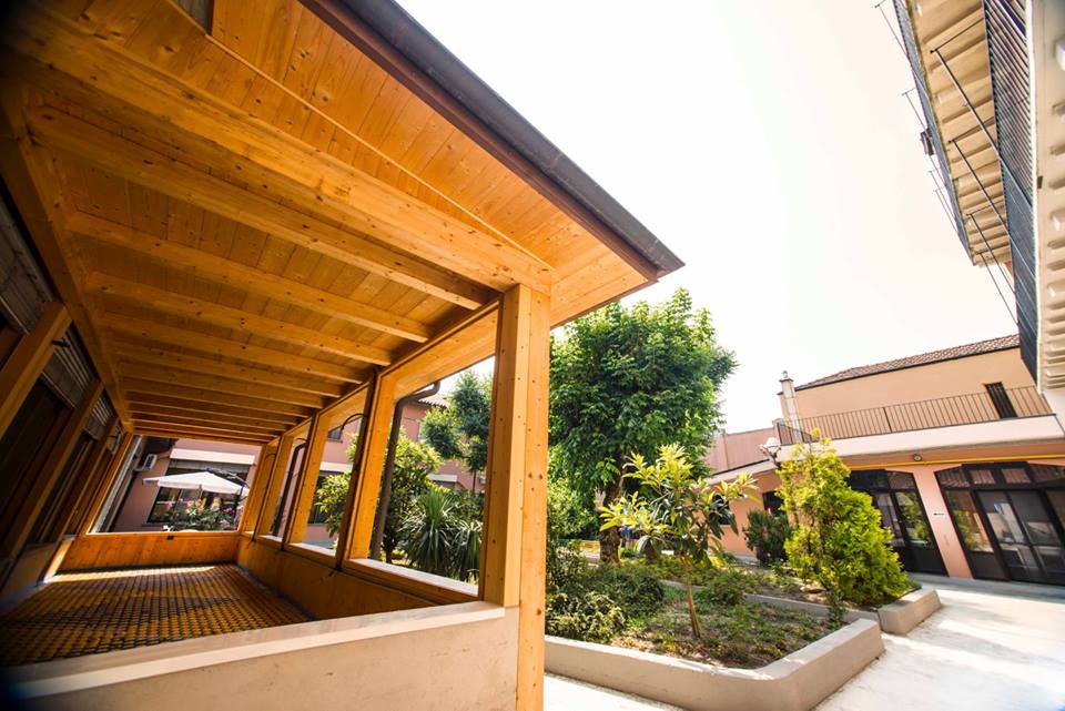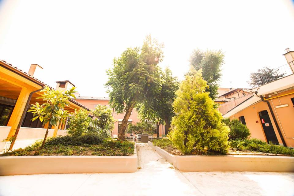 Il Giardino interno Centrale alla struttura, le stanze si affaciano su un piccolo parco rilassante, provvisto di panchine, piante, e zone di lettura e relax.